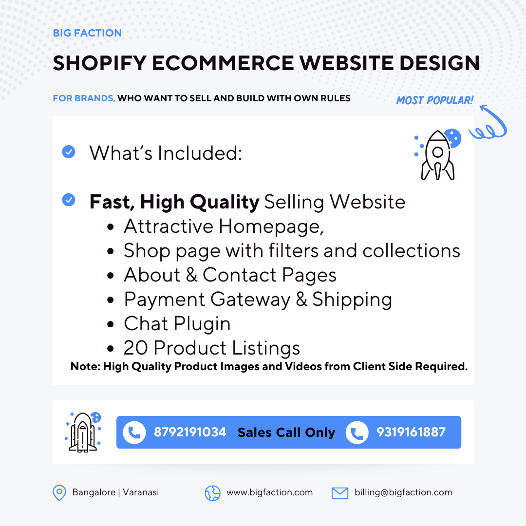 Launch a high-converting, mobile-optimized Shopify store with Big Faction's expert design services. We build custom Shopify websites that reflect your brand identity, deliver seamless user experiences, and are geared for growth from day one.